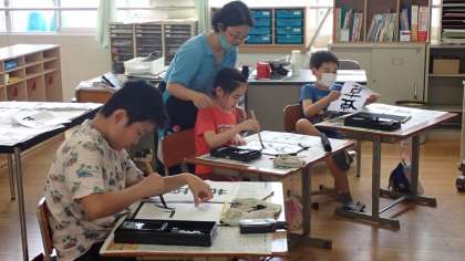 コスモス学級では,毛筆で習字をしていました。みんなとても集中して書いています。