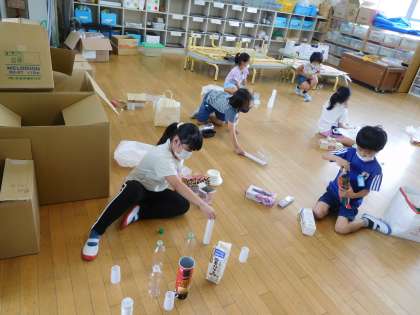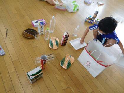 「音が鳴るものを集めて楽器やさんを作ろう。」
