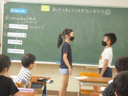 3年生の学習には,外国語活動もあります。今日は,ALTの先生と一緒に学習しました。「Hellow!!」世界のあいさつを知ったり,英語で,友だちとあいさつをしました。とても,意欲をもって何人もの友だちと手をふって取り組んでいました。