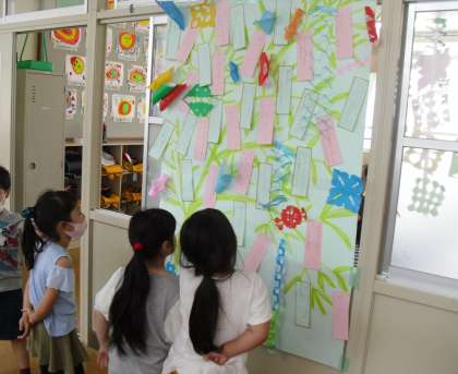 みんなでかざりを見合って,声をかけていました。