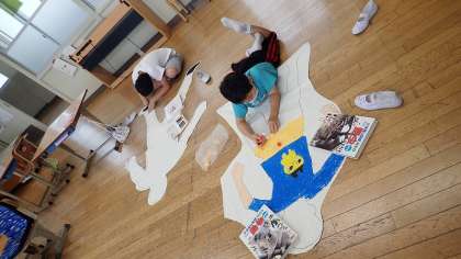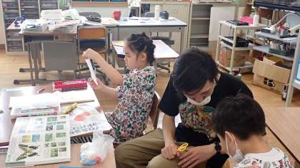 コスモス学級では,理科の学習で「チョウ」をつくっています。紙粘土で体をつくり,カラフルに色を塗った翅を取付けました。また,図工では「人間うつし絵」の続きに取り組んでいます。
