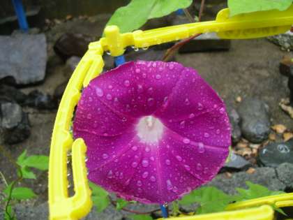 雨に濡れてきらきら光るあさがおが,とてもきれいでした。