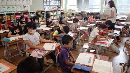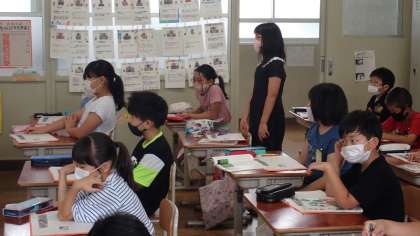 4年生は,国語の説明文の学習をしています。文章全体を,「はじめ」「中」「おわり」の3つに分けるために話し合っています。それぞれのまとまりの意味を考えて分けることができました。