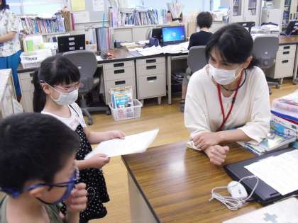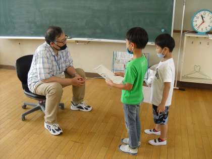 生活科「なかよしいっぱいだいさくせん」でのインタビューの様子です。