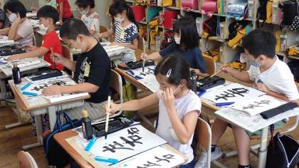 4年生は,書写「左右」の学習に取り組んでいます。
