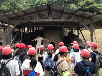 信楽陶苑に到着しました。狸村から少し離れたところにある登窯を見学して,信楽焼の絵付け体験が始まります。