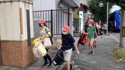 修学旅行から帰ってきた6年生です。ちょっと疲れた様子ですが,全員元気です。