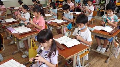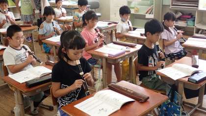 3年生は,リコーダーの練習をしています。リコーダー曲集の「笛星人」には,『シ』だけで演奏できる曲もたくさんあります。息の入れ方やタンギングに気を付けて演奏しています。