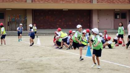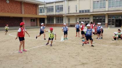 4年生は,体育の「リレー」の学習に取り組んでいます。