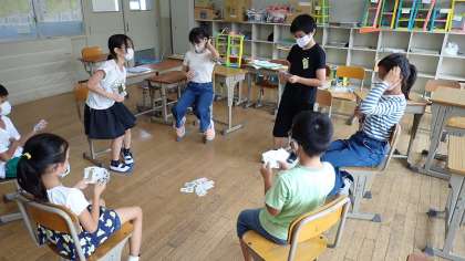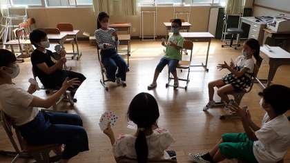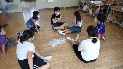 教室で遊んでいるグループの様子です。最後の1枚,『ババ』を持っているのは誰でしょう!?