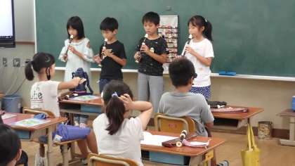 3年生は,音楽の学習をしています。今日は,リコーダーの発表会でした。発表するグループは,ちょっと緊張した様子でしたが,伴奏のリズムに乗って楽しそうに演奏していました。聴き手も,大変立派な姿勢で発表を聴くことができました。