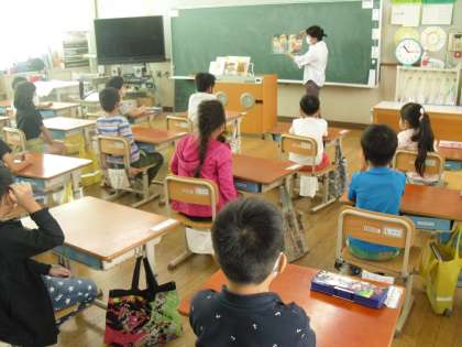 生き物や工作の本が大好きで,絵本を手にとることが少なかった子ども達ですが,図書館司書が絵本を5冊紹介し,