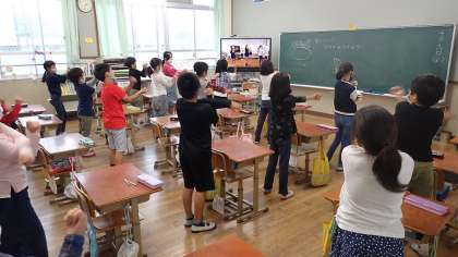 3年生は,「乾隆スポーツフェスティバル」の準備運動のダンスを練習していました。6年生のダンス係の子たちが撮ってくれたビデオを見ながら,楽しそうに踊っていました。