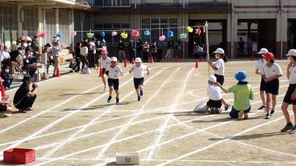 中学年の部のはじめの競技は,3年生の80m走です。走るのは1年前と同じ距離ですが,1年前よりも速く,たくましく駆け抜ける姿がとてもかっこよかったです。