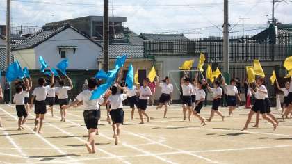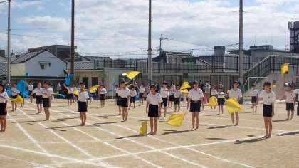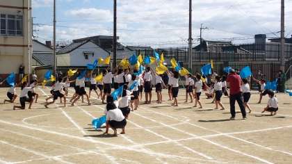 最後は再び旗を持ち,力強く演技をしました。見る人たちに,5・6年生の思いの伝わる,すばらしい演技でした。