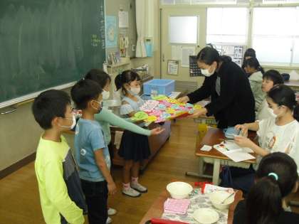 1年生 6年生へプレゼントを渡しました