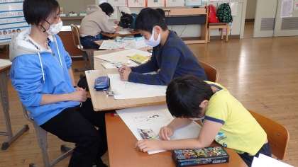 コスモス学級では,図工の学習に取り組んでいます。自分が選んだ写真をもとに,「乾隆スポーツフェスティバル」の時の思い出を絵に表していきます。今日は,鉛筆やパスで下描きをしたり,絵の具を使って色を乗せたりしていました。