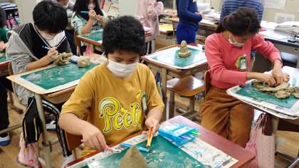 5年生は,図工の「わたしのいい形」で彫塑粘土を使った作品づくりに取り組んでいます。題材の学習もそろそろ終盤になり,つくりたい形がはっきりしてきたようです。完成が楽しみですね。