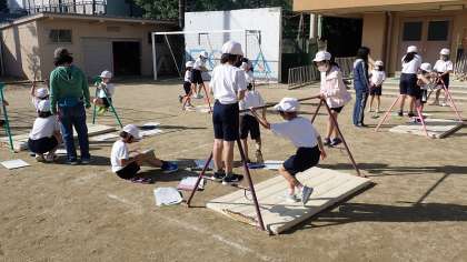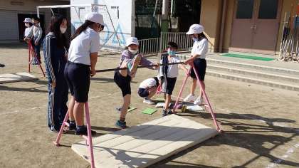 「ちきゅうまわり」や「足ぬき回り」,「前回りおり」などの技に積極的に挑戦していました。