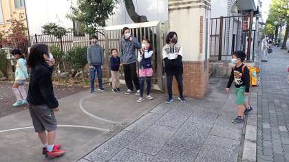 あいさつをする子も登校する子も寒そうにしていましたが,元気にあいさつをすることができました。