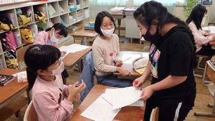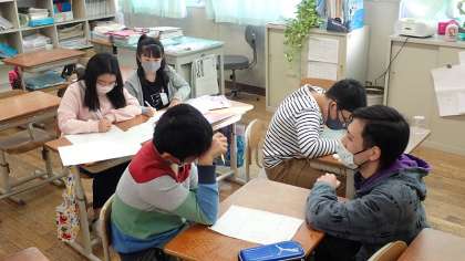 アート・絵本・手芸クラブです。今は,絵本作りに取り組んでいます。ひとつのお話をグループで分担してつくり,ひとつにまとめて絵本を仕上げるようです。