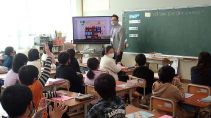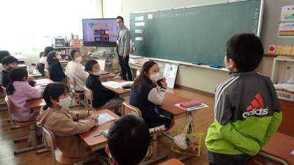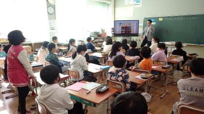 4年生は,外国語活動の学習で,Unit5”Do you have a pen?”の学習に取り組んでいます。学習のはじめには,文房具の英語での言い方をみんなで確かめたり,先生の問いに答えたりして,英語での言い方に慣れ親しんでいました。