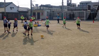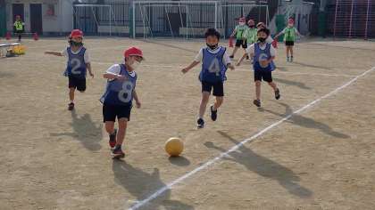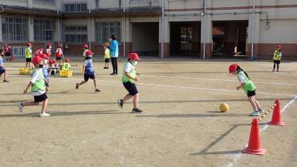 1年生は,体育の「ボールけりゲーム」の学習に取り組んでいます。チームの友達同士声を掛けあいながら,楽しく学習に取り組むことができました。
