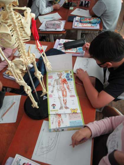 4年生は,理科で「わたしたちの体と運動」の学習に取り組んでいます。「骨のつくりや筋肉のしくみが知りたい」「どうして体を動かすことができるのか知りたい」という意見をもとに,今日は骨のしくみを調べました。自分の腕をさわったり模型や本を使ったり,色々な方法で調べたことをまとめ,意見を交流しました。とても意欲的に取り組む姿が印象的でした。