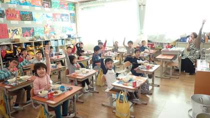 1年生にとっては初めてのとんかつでしたが,みんな大喜びで食べていました。