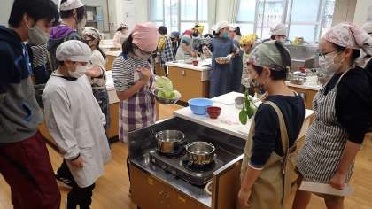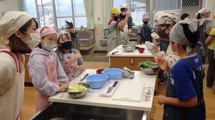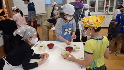 野菜の種類によってゆで方やゆでる時間が違うので,まちがえないように確かめながらゆでていきます。できあがったら,野菜に手作りしたドレッシングをかけました。