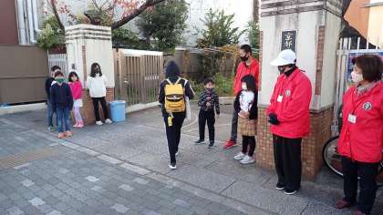 日に日に寒くなる登校時間ですが,朝から元気な子どものあいさつが響いていました。