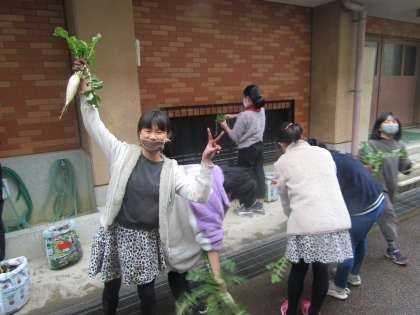 思っていたよりも大きな大根に,歓声があがっていました。おでんにしようか,大根おろしにしようかと考えながら家に持ち帰りました。