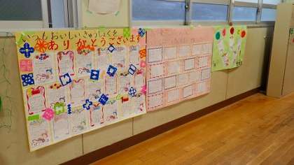 給食調理委員さんへの感謝の気持ちを伝えるメッセージは,いつものように全校で取り組み,昇降口に掲示しました。