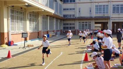 3・4年生は,毎週水曜日の朝マラソンで体力づくりをしてきました。体育の学習でも,一生懸命に練習してきました。1・2年生より距離が長くなりましたが,最後まで自分のペースを保って走り切ることを目標にがんばりました。