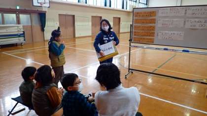 今日は,体育館で初めてリハーサルを行いました。せりふの分担を決め,実際にゲームをしたり歌を歌ったりして流れを確かめました。本番も,上手くできるといいですね!