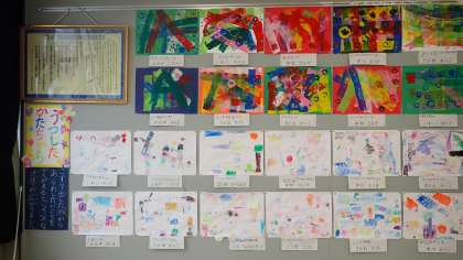 1年生は,平面作品として「ぺったんコロコロ」と「うつしたかたちから」の2作品を展示しています。