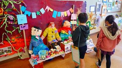 6年生の作品の前で足を止めた子が,「6年生になったら私も作りたいな。」と言いながら鑑賞していました。3年生の版画を鑑賞している子は,1年前に自分たちが取り組んだ時のことをふり返りながら作品をじっくり見ていました。