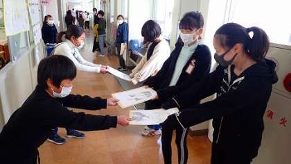 最後は,在校生を代表して,5年生から6年生へ感謝のメッセージを手渡しました。