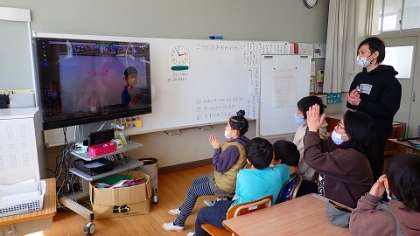 コスモス学級は,3・4校時に支部合同のお別れ会を開きました。いつもであれば,支部の学校が同じ場所に集まって,6年生の卒業をお祝いし,みんなで仲良く過ごすところですが,今年度はリモート開催となりました。