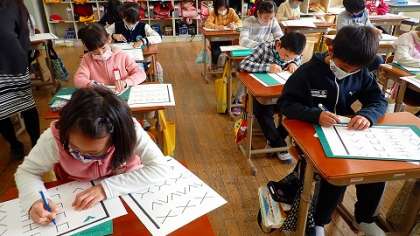 3年生は,図工の「ひらいて広がるふしぎな世界」の学習で,カッターナイフの使い方を学習しています。