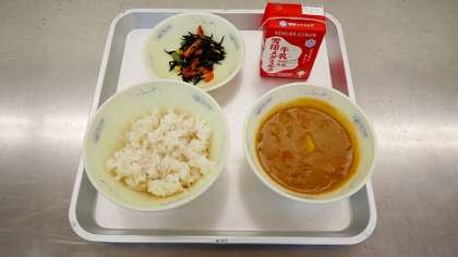 子どもたちに大人気の献立と言えば『カレー』です。今日のカレーにも,ハッピーキャロットが入っていました。