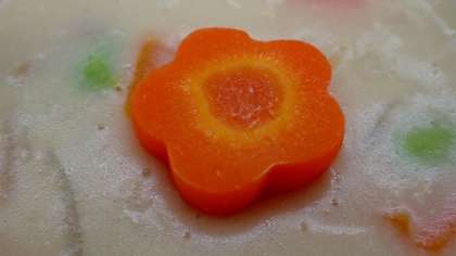 チャウダーには,4種類の豆(大豆・枝豆・手亡豆・金時豆)が入っており,具だくさんチャウダーでした。ハッピーキャロットも入っていました。