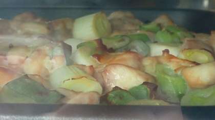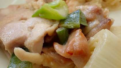 「鶏肉のてり焼き」は,しょうゆやみりんであま辛く味をつけた鶏肉と白ねぎを,スチームコンベクションオーブンで焼きました。スチコンで蒸し焼きにするので,鶏肉はふっくらと香ばしく,白ネギはしっとりと甘く焼くことができます。鶏肉と白ねぎの両方のおいしさを味わっていただきました。