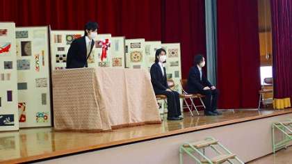 体育館にて,令和2年度の離任式を行い,これまでお世話になった4名の教職員のみなさんとお別れをしました。