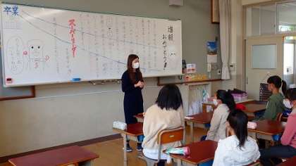 6年生の教室では,担任の先生からお話を聞いています。