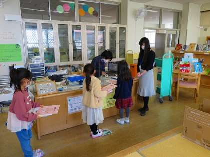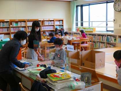 司書の先生に読書ノートに貼ってもらったバーコードを読み取ってもらい,選んだ本を借りることができました。今日借りた本は,まだ教室に置いていますが,週末にはご家庭に持って帰ってじっくり読んでもらう予定です。