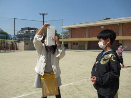 快晴の今日は,1日の気温にどのような変化が見られるのかをわくわくしながら調べていました。