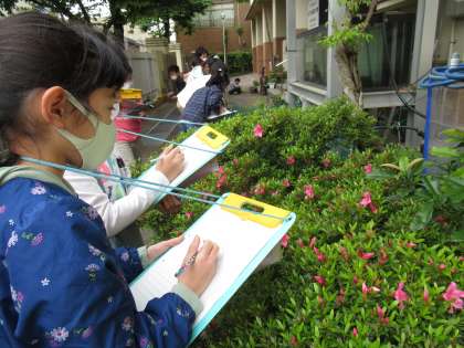実際にみんなで外へ行き,春の生物のようすを観察しました。