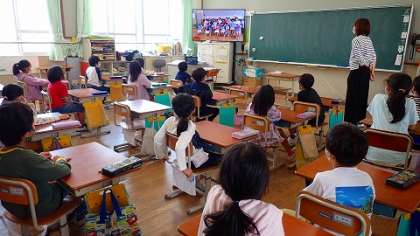 2〜5年生は,各教室のテレビで見ています。