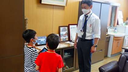 今日は,学校の教職員に名前や好きなもの,どんな仕事をしているかなどをインタビューして回りました。職員室に来たときは「失礼します。1年い組の○○です。」とあいさつすることができました。インタビューしたことは,GIGA端末のタブレットを使って記録しています。1年生も,タブレットを活用する場面が増えていきそうです。